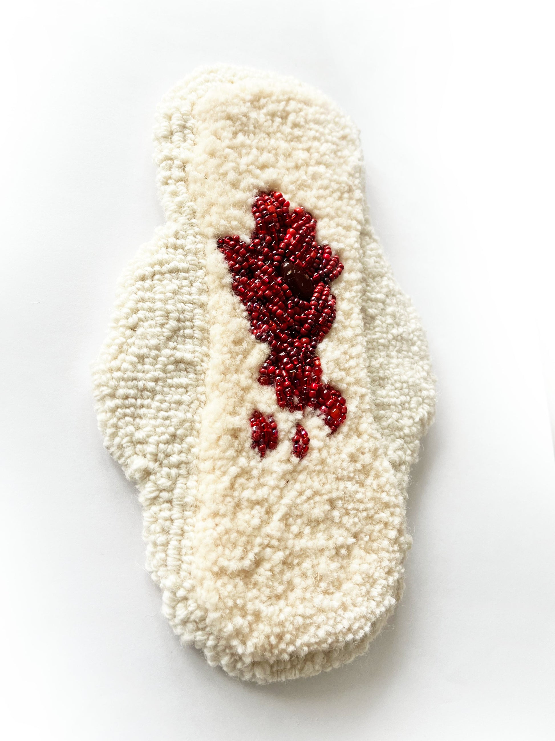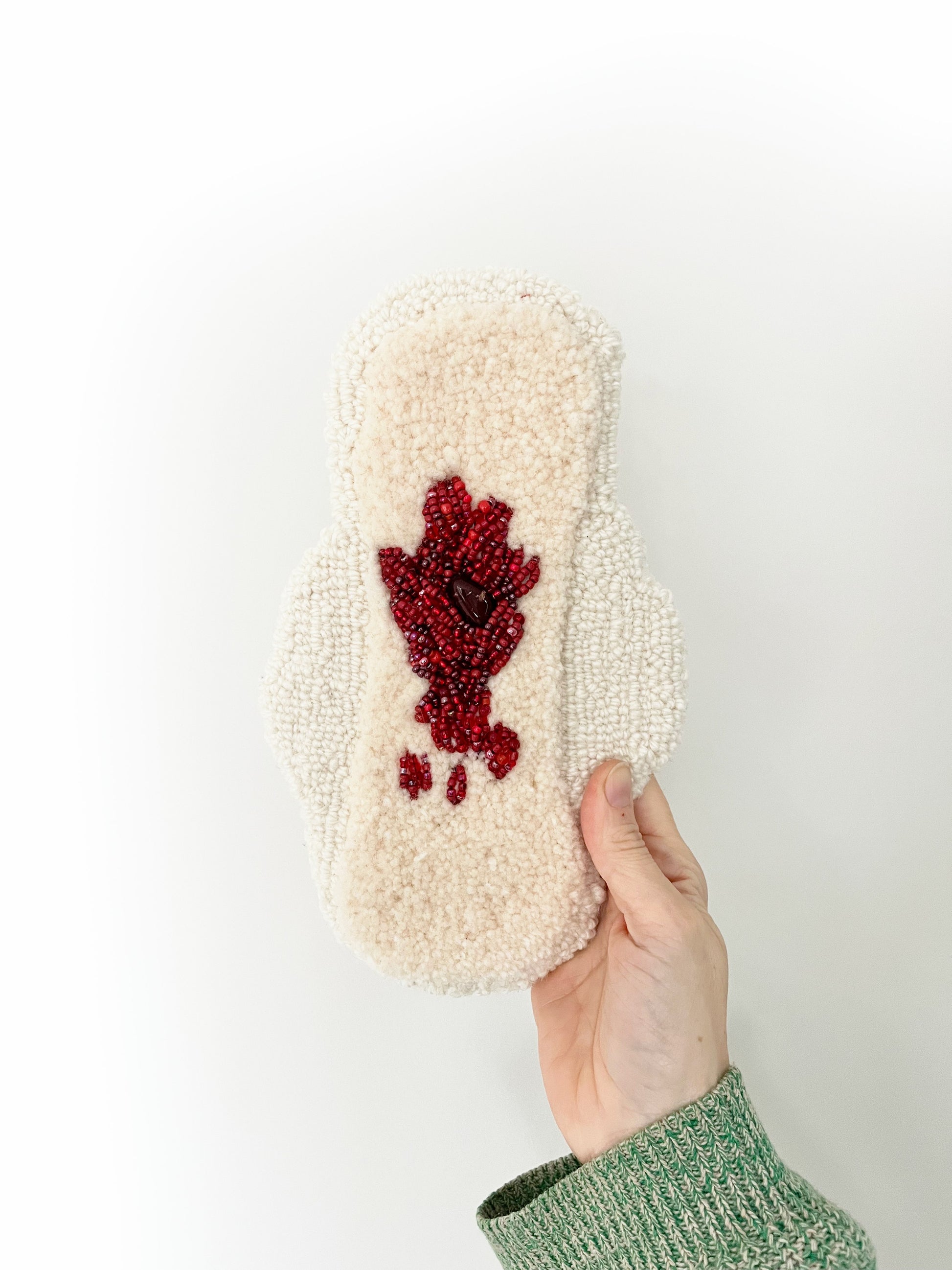 100% getufte wol met geborduurde glaskralen